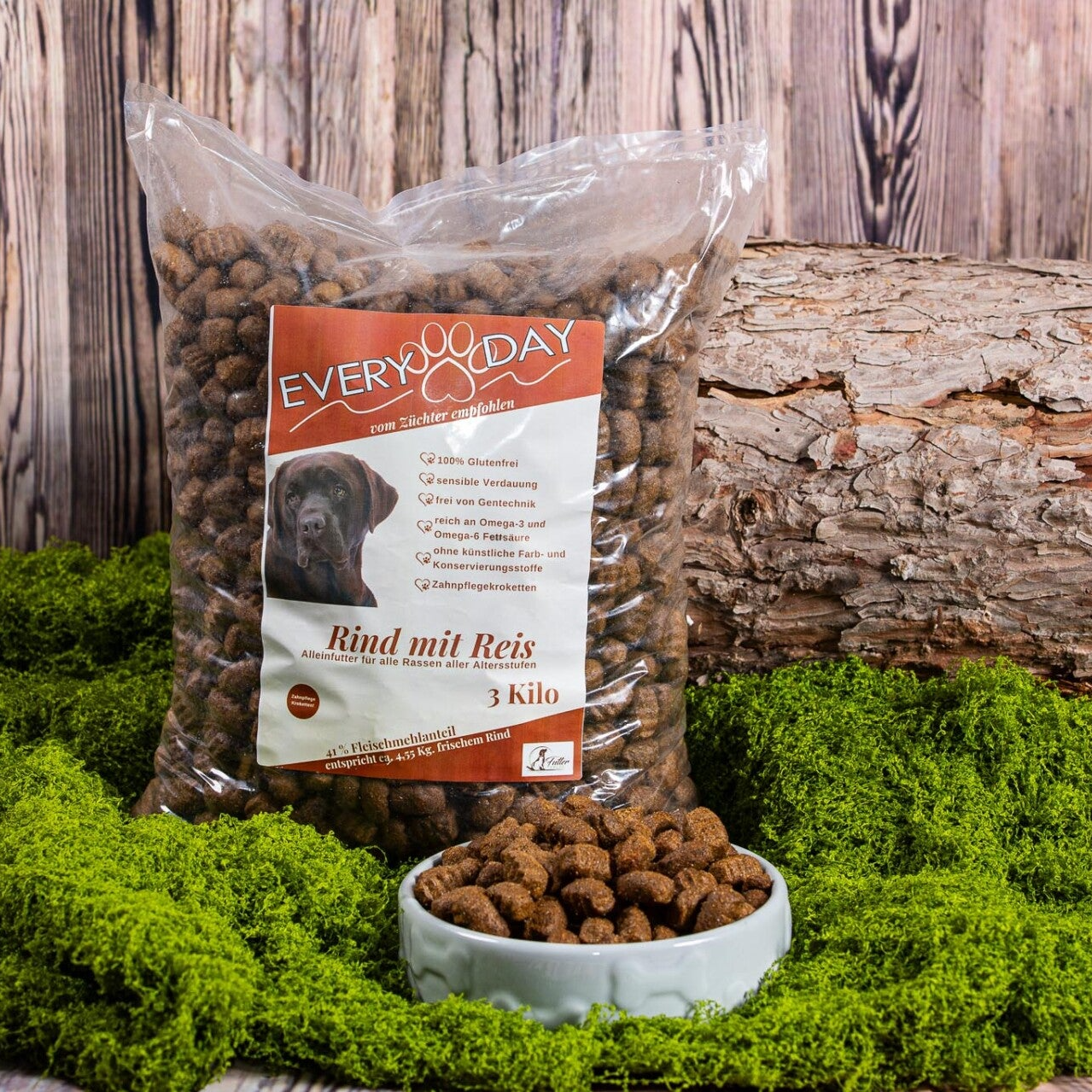 Mit 41 % Rindfleischmehl bietet das Futter eine besonders hochwertige tierische Proteinquelle. Ergänzt durch funktionale Zutaten wie Leinsamen, probiotische Bakterien, Kräuter, Yucca Schidigera sowie Omega-3- und Omega-6-Fettsäuren unterstützt es Verdauung, Haut, Fell und allgemeines Wohlbefinden.